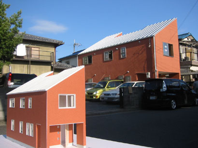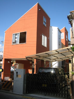漫画家である、クライアントさんの要望で鮮やかな赤い色の住宅になりました。