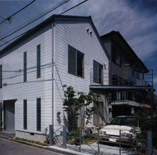 | 私の親友H氏の住宅で、私の処女作です。(若気のいたりですみません)H氏は土地を所有していないのと融資の関係で建て売りを買わざるを得ない状況でした。しかし建て売りの業者さんが非常に好意的で設計は施主サイドでしてよいと言ってくれたので、建て売り形式ながらかなり満足のいく作品になりました。総工費(設備、外構含む)は約1700万円です。設計料以外、全部込み込みで1700万円で無垢の木の家をつくるのは、かなり難しいと思いますが、大工さん達の協力もあり、豊かな空間を持つ、ローコスト住宅が出来たと思っています。 | ||||||||||||||||||||||||||||||