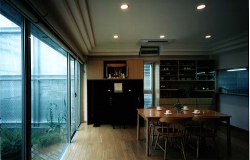 | 1階居間です。窓は目一杯大きくとり中庭の光りを最大限に取り込みます。 | ||||||||||||||||||||||||||||||