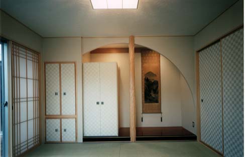 | 和室です。あまりオーソドックスにならないように考えました。8畳ひとまに床の間、押入れ、仏間を計画しなければならなかったので苦労しました。 | ||||||||||||||||||||||||||||||
