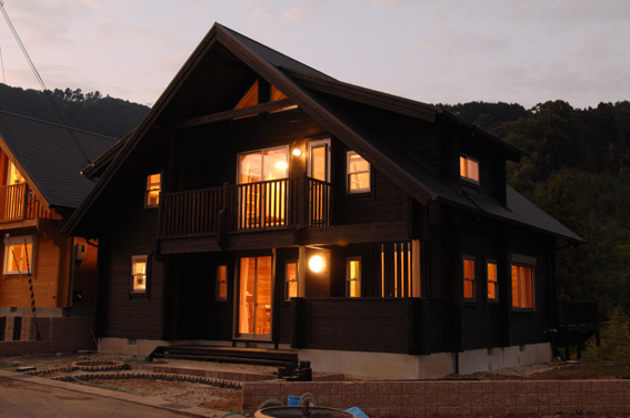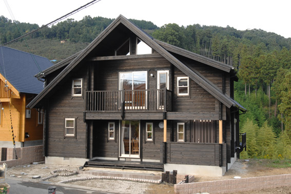外観です、こちらのログハウスは、黒のキシラデコールでシックに仕上げてみました。 |