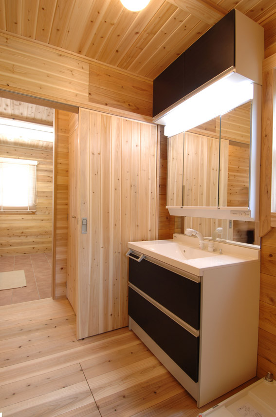 洗面所です。ここは、あまり目にする所でもないので、コストダウンのためにユニットにしました。 |