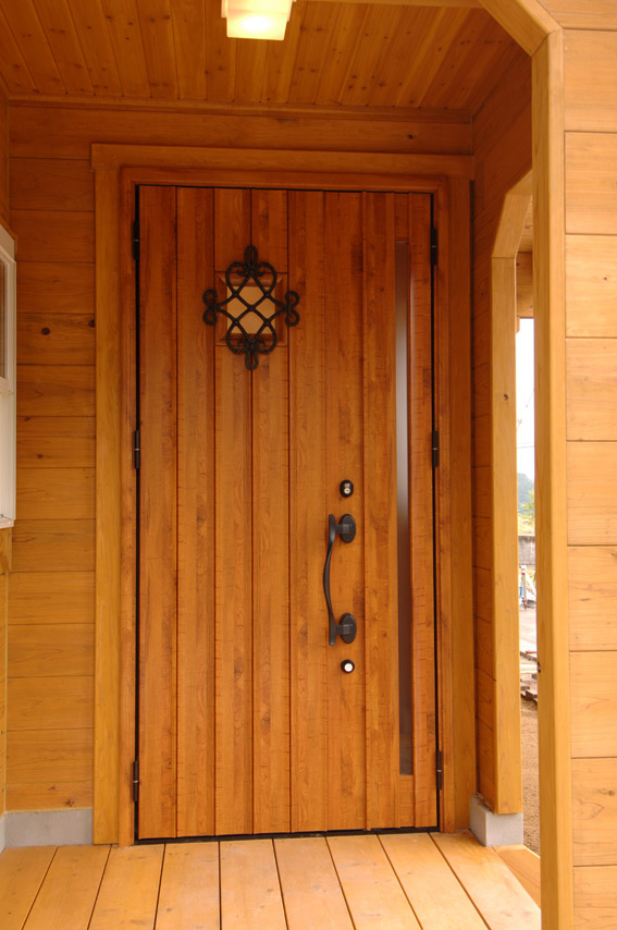 玄関ドアです。雰囲気を大事に、ログハウスに合うドアをチョイスしました。 |