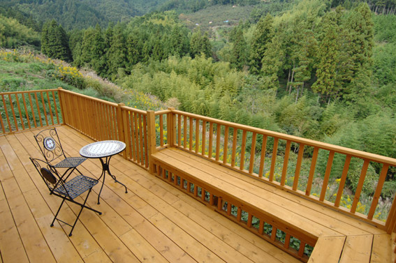 テラスから見える景色です。緑いっぱい、自然いっぱいを感じられます。 |