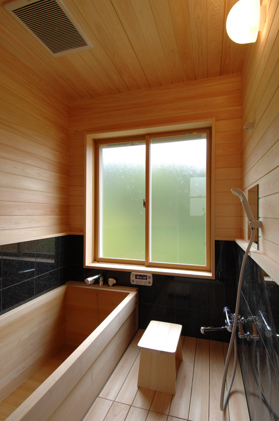 浴室です。檜風呂です。めちゃくちゃ気持ちいい浴槽ですよ。 |